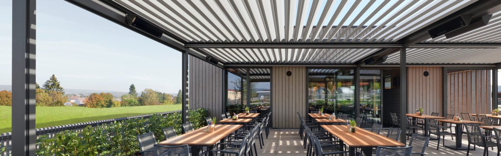 Mit unseren Sonnen- und Wetterschutzlösungen können Sie Ihre Außengastronomie profitabel erweitern. Ihre Gäste werden zuverlässig vor Wind- und Wetter geschützt – so kann die Terrassensaison verlängert und der Außenbereich bei jedem Wetter besetzt werden. Die maßgeschneiderten Komplettlösungen werden dabei individuell auf Ihren Außenbereich und Ihre Wünsche abgestimmt. Vielfältige Ausstattungen sorgen für ein gemütliches Ambiente, das zum Bleiben einlädt.